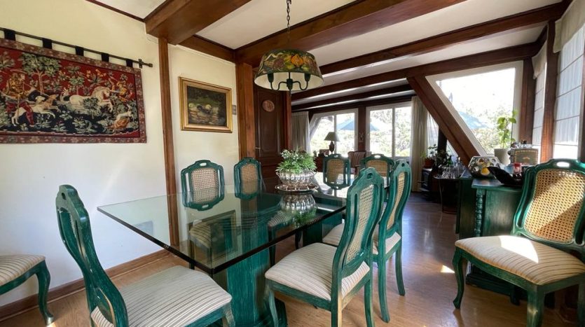 Estupendo terreno con maravillosa vista y entorno natural de aprox. 1584 m2, tiene una casa tipo A en madera del año 1976 de aprox 150m2, muy luminosa, piso de madera en el primer piso. Maravilloso y único terreno con acogedora y linda casa de madera tipo A. Segundo piso: Exterior: Estacionamiento techado para 4 vehículos, y mucho espacio adicional para varios estacionamientos