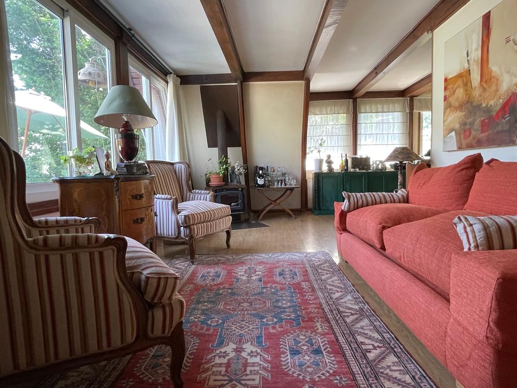 Algunas ventanas termopanel, calefacción con combustión lenta, piscina, quincho, gran terraza con vista