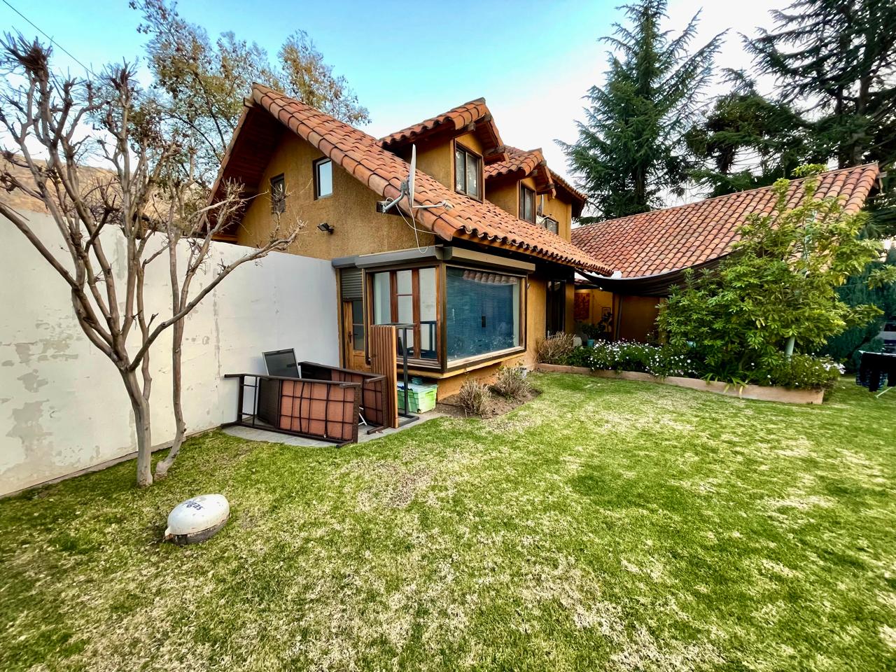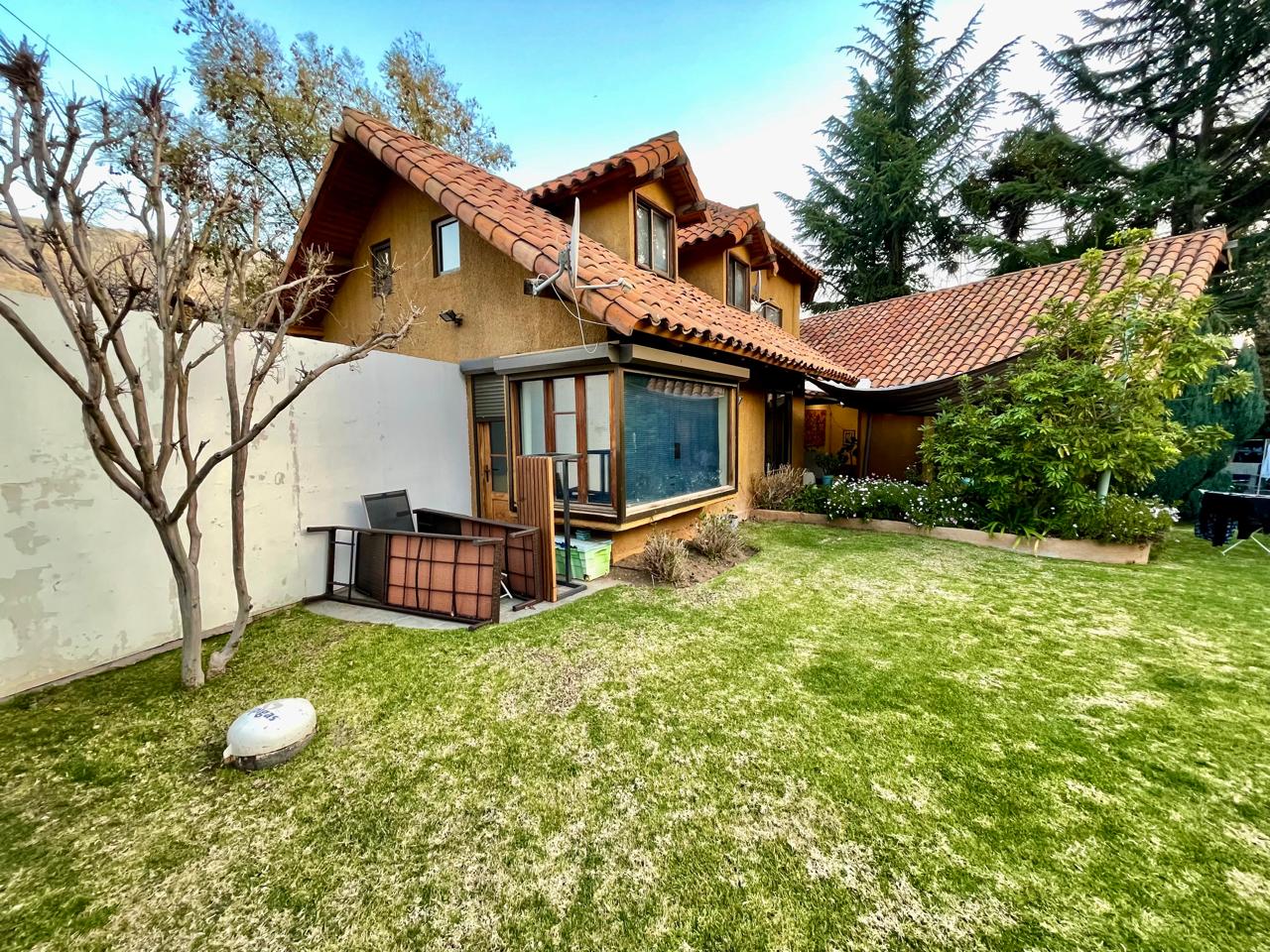 Estupenda y acogedora casa de dos pisos en el sector bajo del Arrayán, muy luminosa!! Con orientación norte, a pocos minutos del International Preparatory School y del Maimonides (Jewish Education for New Generation), y cercana también a colegios (The Southern Cross School; Colegio The Southland School. Colegio Dunalastair Las Condes. Lincoln International Academy. Colegio Pedro de Valdivia, Colegio Dunalastair Las Condes, supermercados, farmacias, muy cerca de la plaza San Enrique. Rápidos accesos a Costanera Norte, Kennedy, y grandes avenidas. Calefacción por losa radiante Primer piso: Hall de entrada amplio con piso cerámica Living comedor separado con piso cerámica, ambos con salida a distintas terrazas. Cocina equipada, pieza de servicio con baño, pieza de lavado, patio de servicio techado, 1 bodega debajo de la escalera. Sala de estar con piso alfombra, con salida a la terraza 1 dormitorio con closet, piso flotante, 1 baño completo. Dormitorio principal en suite, piso flotante, con salida al jardín, ducha y jacuzzi, vestidor. 2 dormitorios con piso flotante, 1 baño Piscina