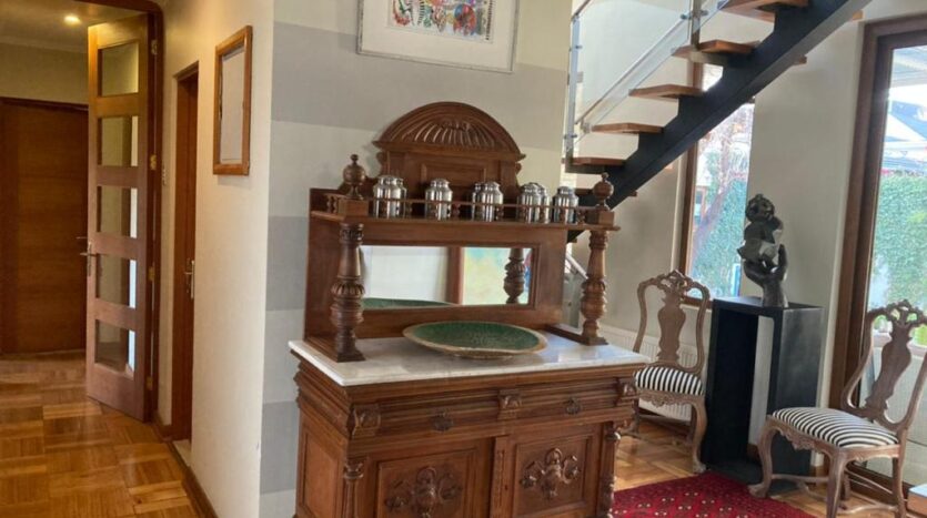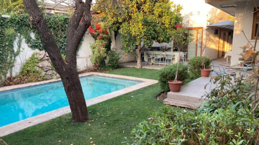 Hermosa casa estilo mediterránea, en tranquilo barrio residencial; cercana al Metro; centros comerciales; GRAN CONECTIVIDAD. Ventanas con termopanel, calefacción central, cuatro terrazas, taller multifuncional, servicios completo, lavandería, piscina, lindo jardín, estacionamiento para cinco autos. Casa remodelada; orientacion Nor-Oriente; muy luminosa, amplios espacios, PRIMER PISO Superficies por confirmar