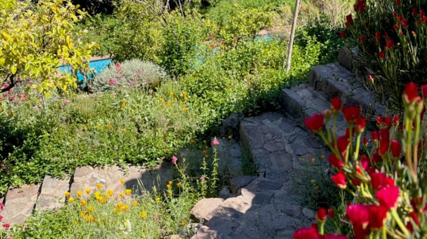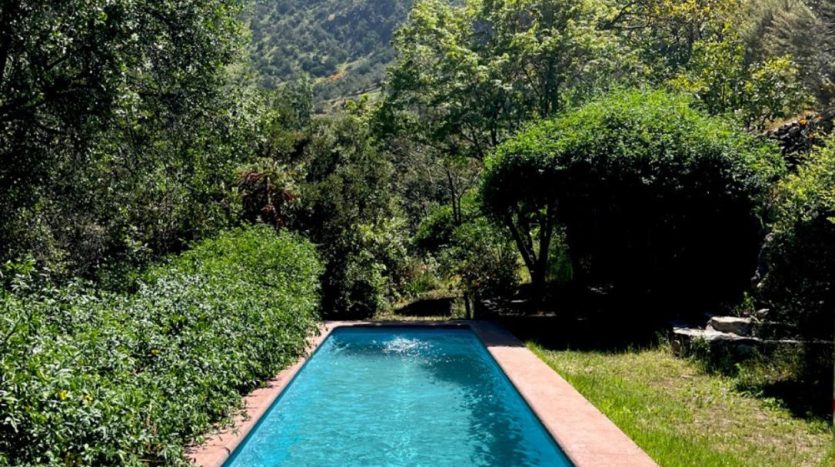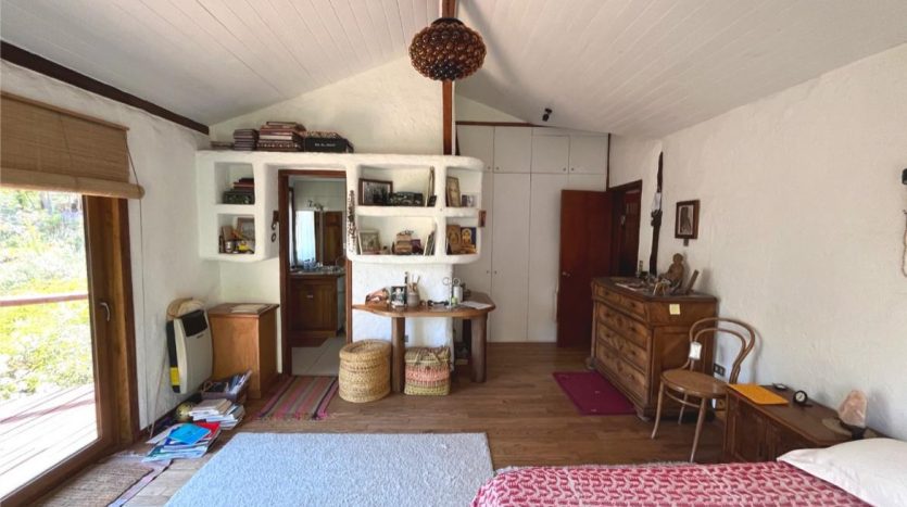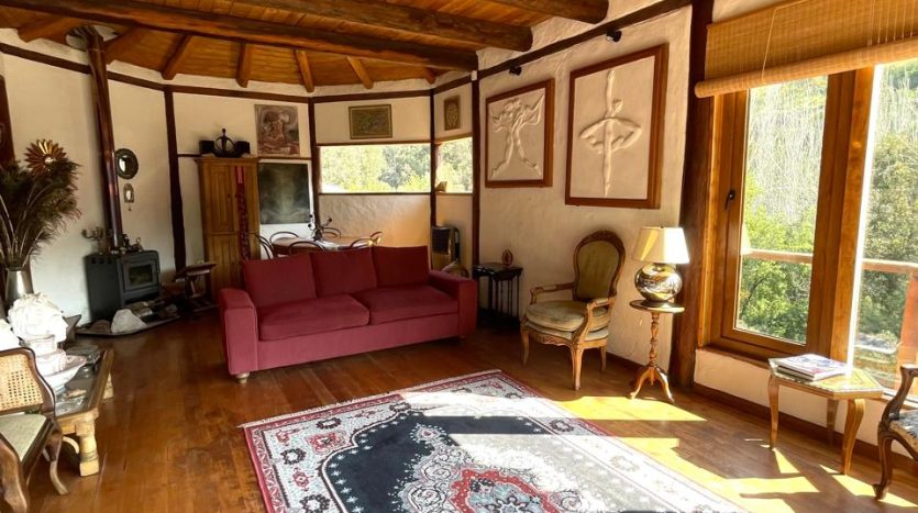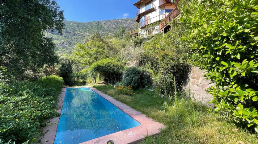 Casa ubicada en condominio en El Arrayán, Lo Barnechea, en un entorno natural con vistas al río y al paisaje circundante. El terreno de la propiedad tiene 1650 m2 distribuidos en terrazas y tramos planos, ofreciendo jardines, senderos de piedra, paseos y varios miradores.