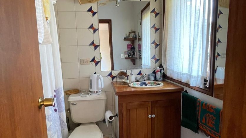 La construcción tiene una antigüedad de 29 años, con 205.62 m2 en dos pisos y ventanas termopanel en pvc. En el primer piso se encuentra el hall de entrada, un escritorio o dormitorio, un baño completo, living comedor con vigas a la vista, cocina americana con salida a una terraza. Además, cuenta con dormitorio de servicio al que se accede por fuera, patio de servicio y bodegas.