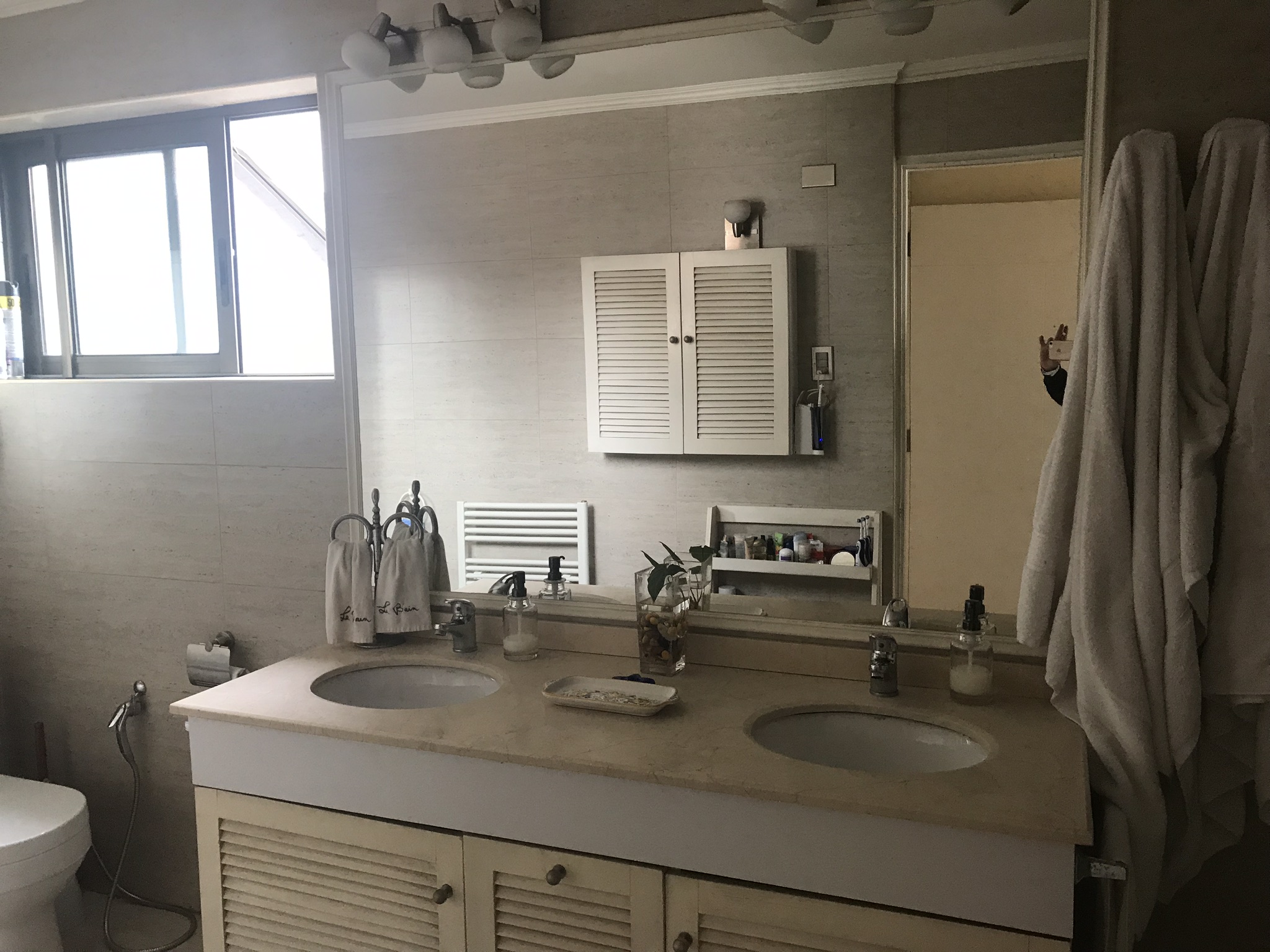 Baño de visita, salita de estar con salida a la terraza, living comedor separado con salida a una gran terraza, quincho, cocina amplia, lavadero, despensa, patio de servicio, dormitorio de servicio con baño.
