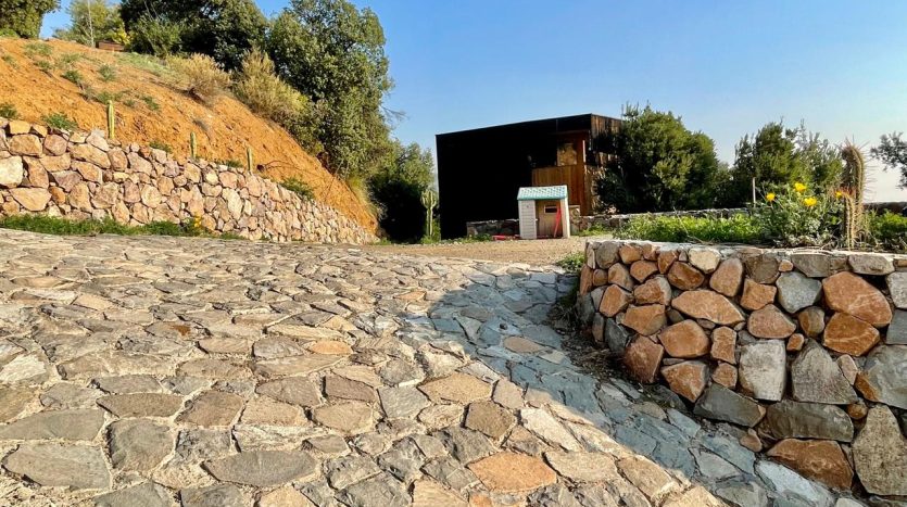Sector de estacionamientos con accesos amplios, piedra natural con entorno nativo.