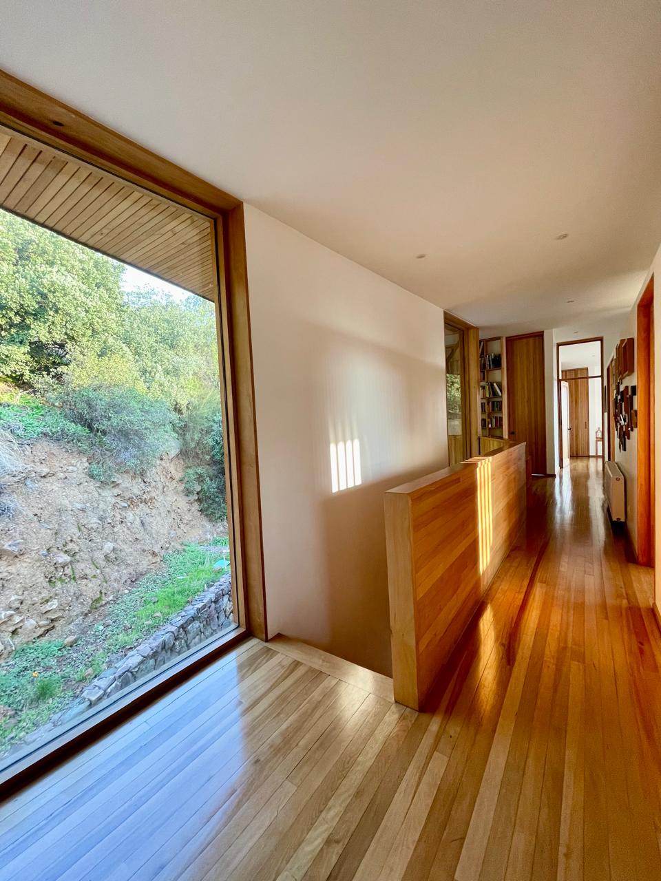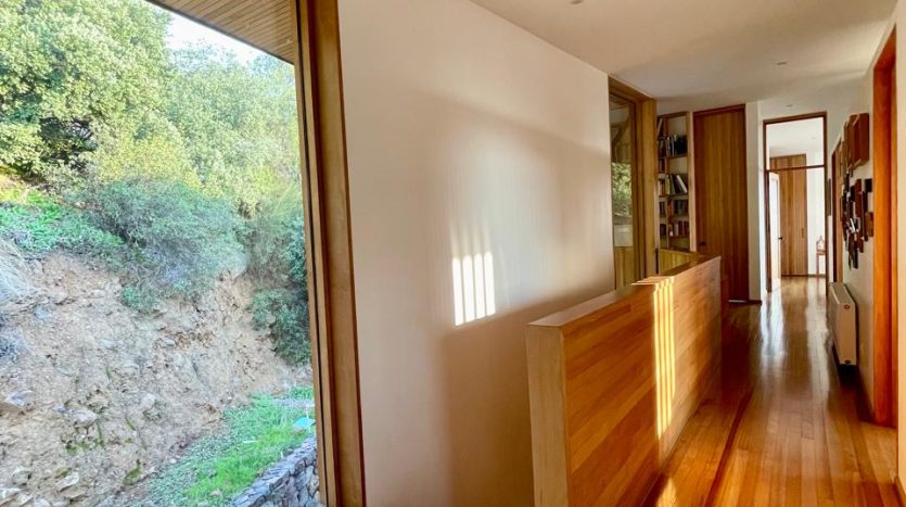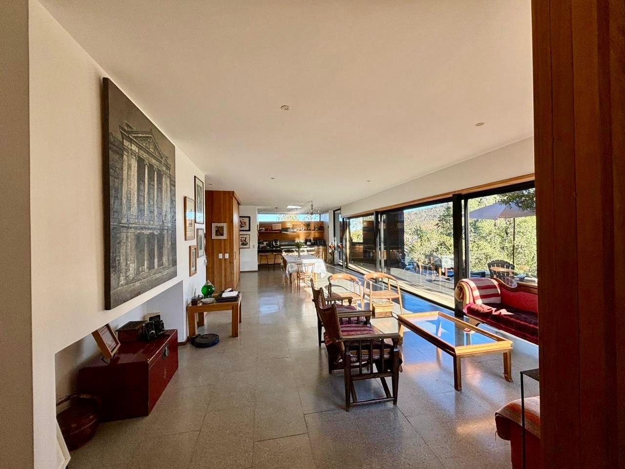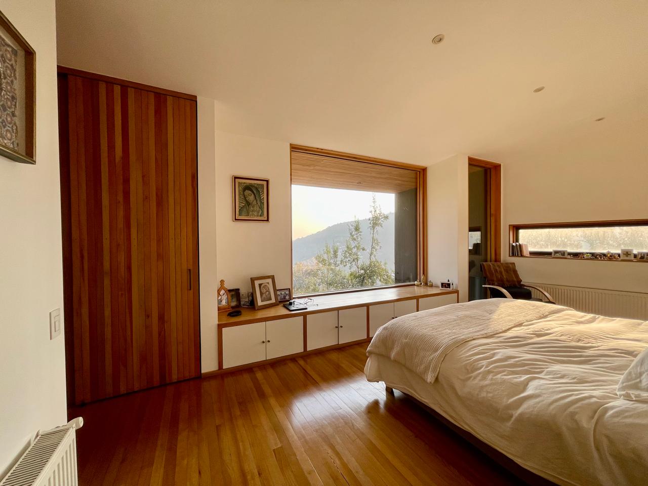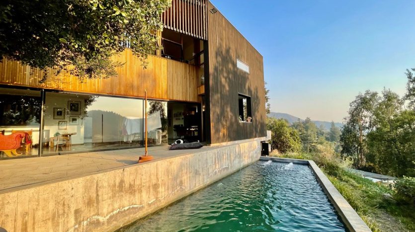 Estupenda casa con arquitectura única de 2 pisos, luminosa, orientación nor oriente, terreno aterrazado, con vista despejada a cerros con maravilloso entorno natural nativo, a los pies del cerro Pochoco, fue diseñada por Maco Carreño, que integra la calidez de la madera, piedra y amplios ventanales para apreciar las vistas. Living y comedor de gran altura. Calefacción central por piso radiante en el primer piso y 2do piso calefacción por radiadores, estupendo jardín y piscina.