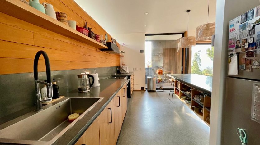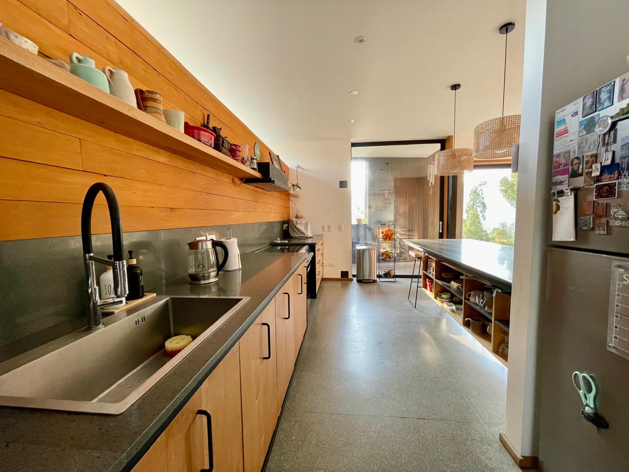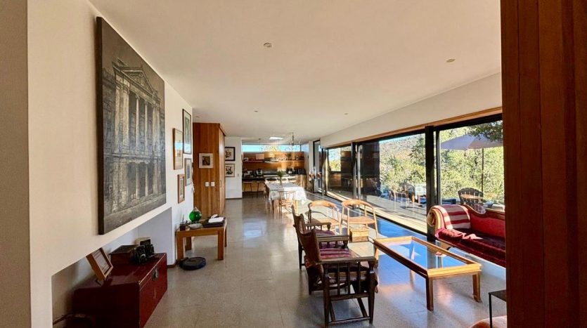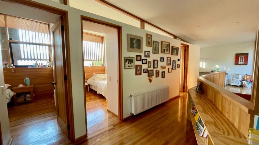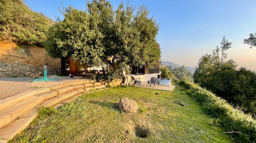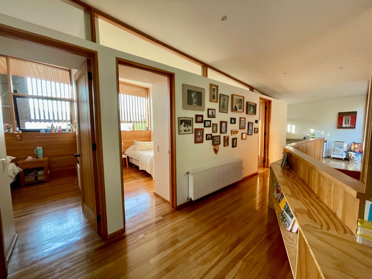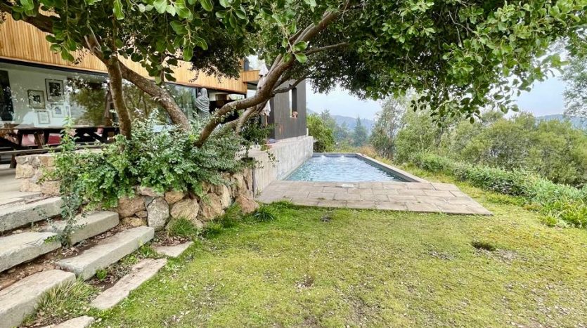 Estupenda casa con arquitectura única de 2 pisos, luminosa, orientación nor oriente, terreno aterrazado, con vista despejada a cerros con maravilloso entorno natural nativo, a los pies del cerro Pochoco, fue diseñada por Maco Carreño, que integra la calidez de la madera, piedra y amplios ventanales para apreciar las vistas. Living y comedor de gran altura. Calefacción central por piso radiante en el primer piso y 2do piso calefacción por radiadores, estupendo jardín y piscina.