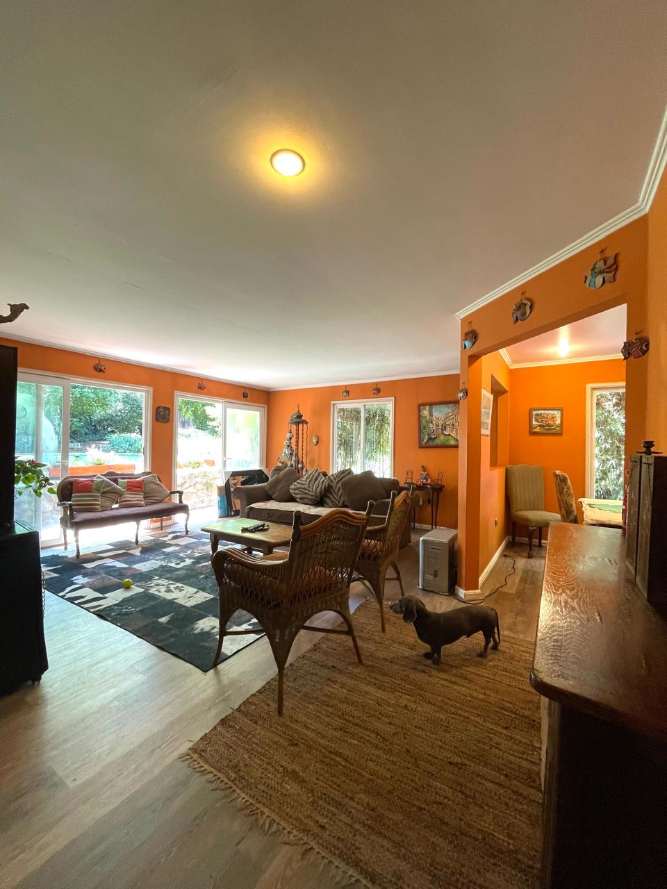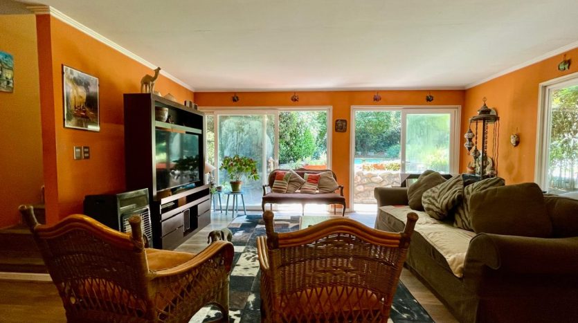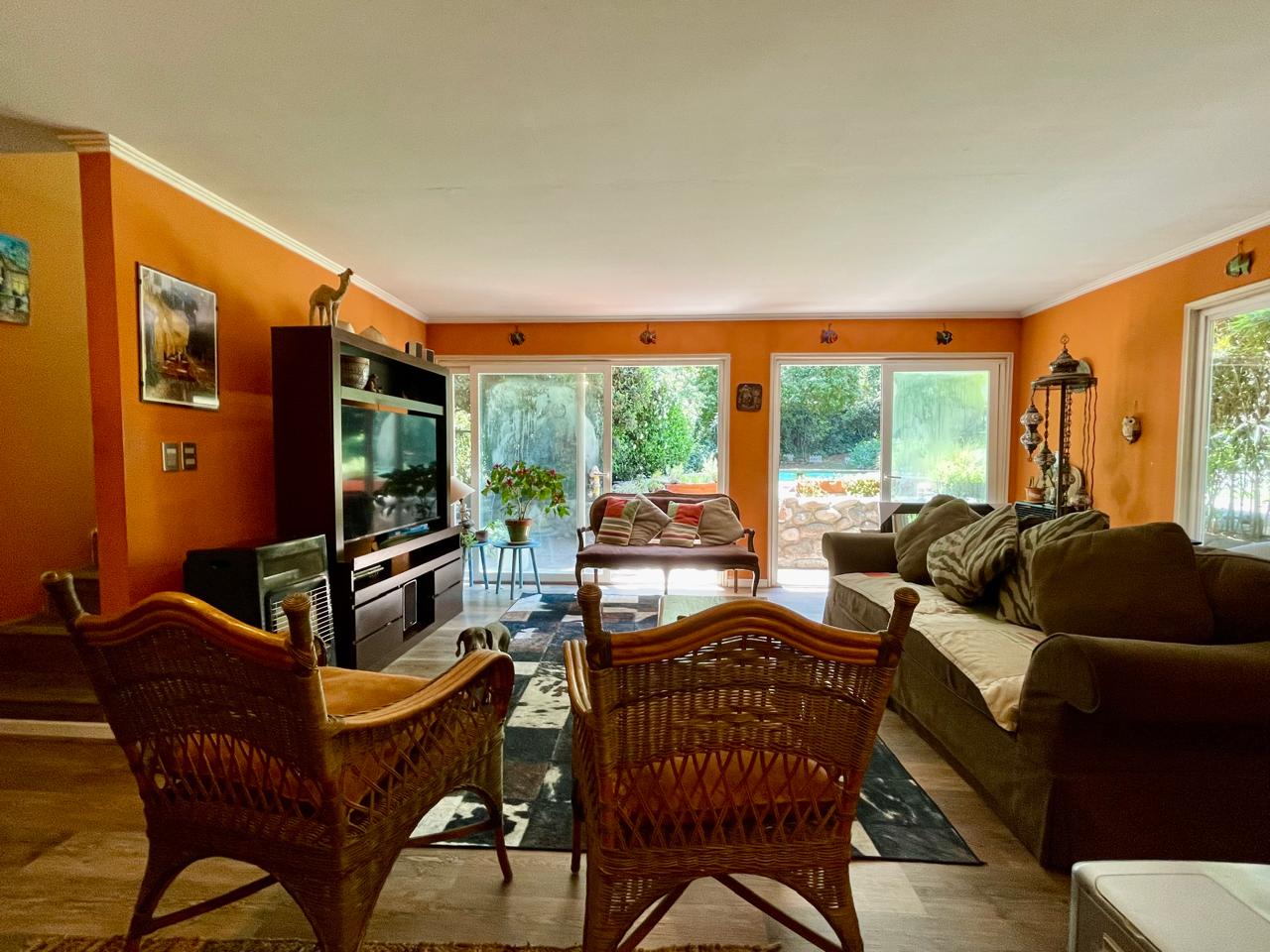 Living comedor separado, living con salida a la terraza con deck de madera con muy linda vista, jardín y piscina.