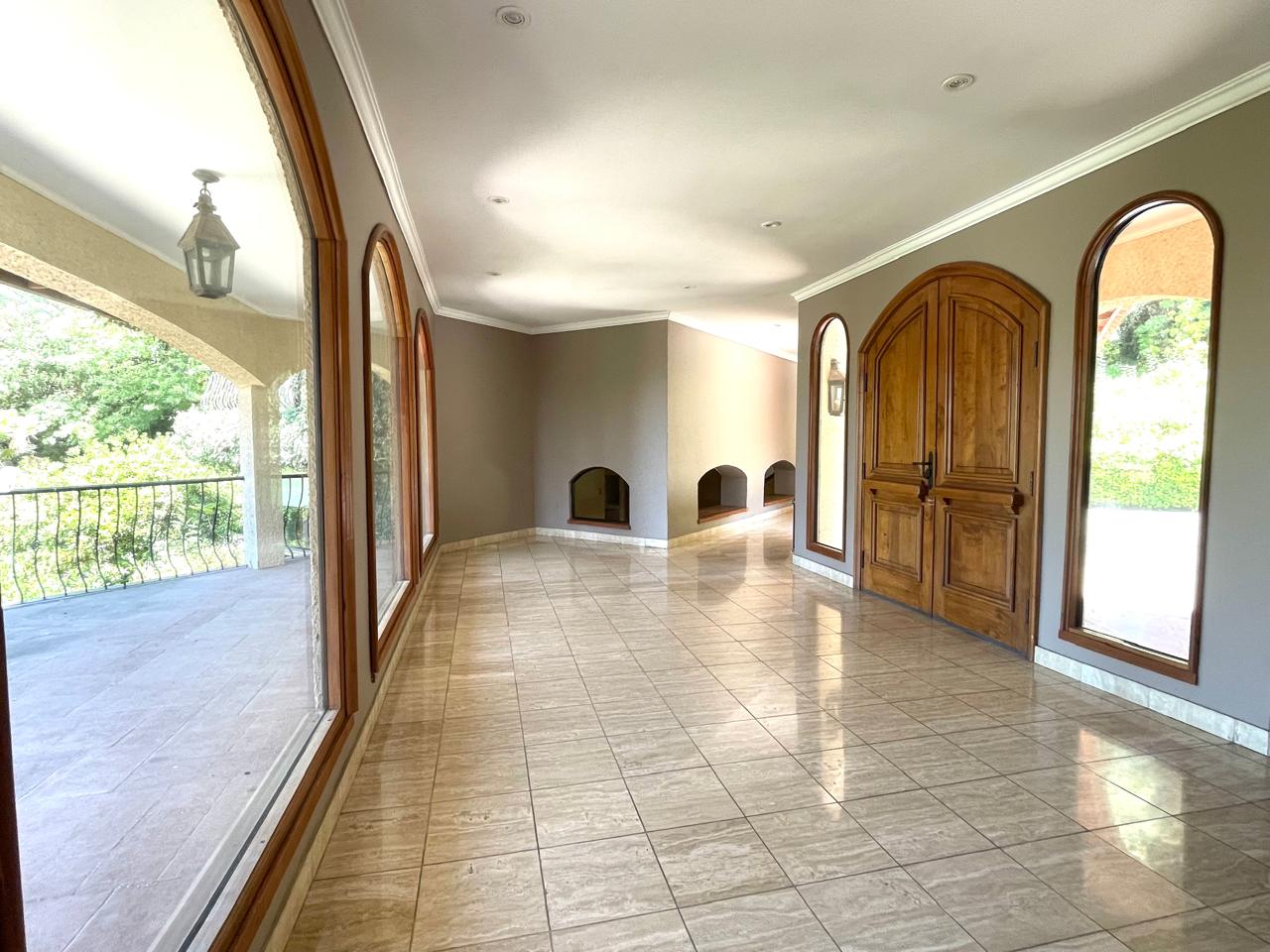Gran sala de estar con salida a la terraza, jardín y piscina, igual con linda vista.