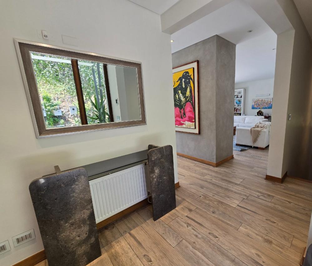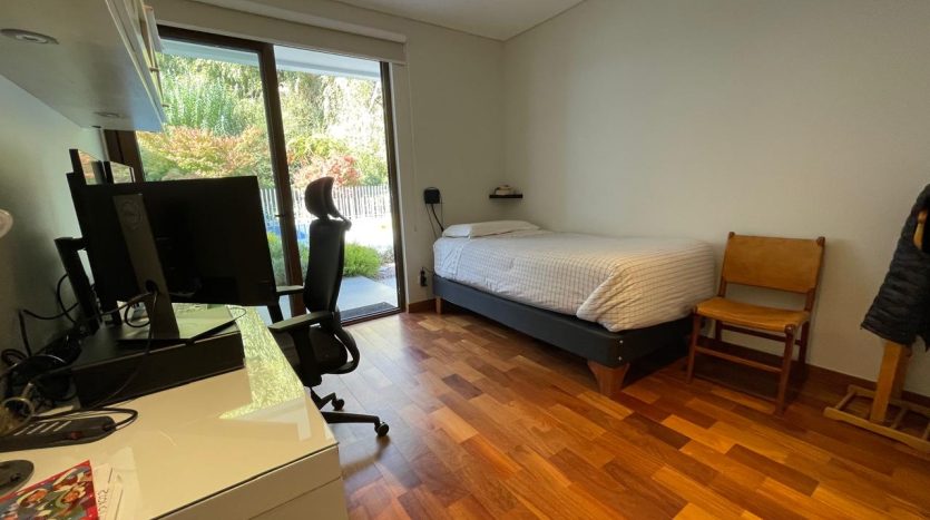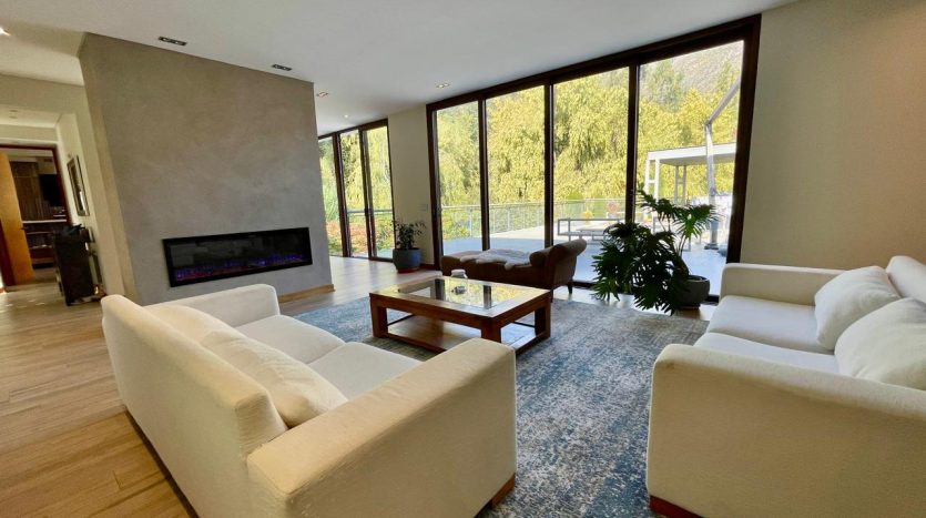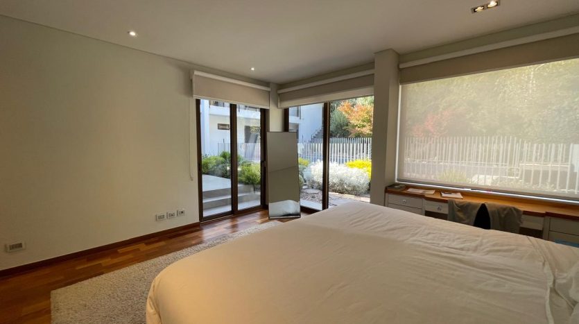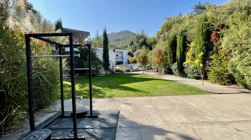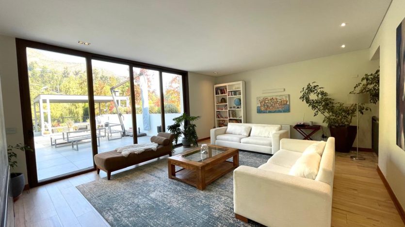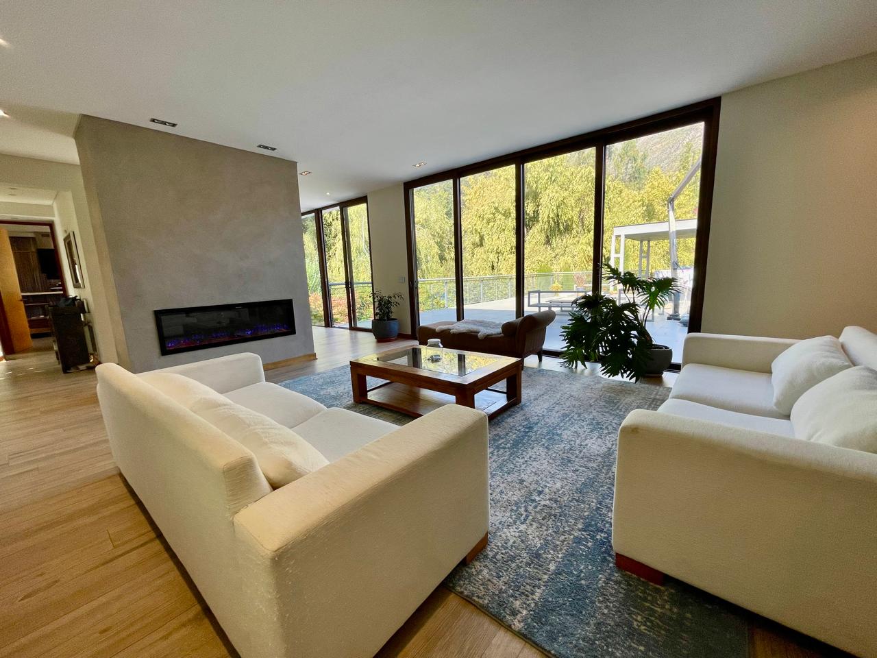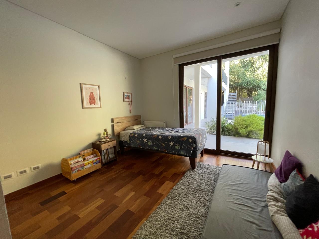 ACTUALMENTE ESTA ARRENDADA HASTA 2026 Condominio, Seguridad!! Estupenda!! Mediterránea y moderna casa en dos Niveles, muy iluminada, construida el año 2014, con eficiencia energética con sistema domótico, con maravilloso entorno natural, jardines, , con salida a senderos y bajada al río, juegos de niños, diseñada por el reconocido arquitecto Carlos Bidegain. Todas las Ventanas termopanel ,marcos PVC, con vidrios con láminas protectoras( blindadas) , iluminación controlada por sistema domótica, piscina con sistema de cloración salina , con jacuzzi, temperada con sistema de serpentín solar, camarín con baño, bodega Calefacción con caldera a pellet y gas, ambos sistemas son independientes, pisos de porcelanato y finos pisos de madera, generador ( por si hay cortes de luz), moderno circuito eléctrico, sistema de cámaras, riego automático y por goteo, maravilloso jardín y entorno , canil y gallinero, huerta. Gran estacionamiento techado. 1er Nivel: Amplio hall, living comedor separados, living con salida a gran terraza con vista panorámica de aprox. 120 m2, Gran Quincho. Baño de visita Cocina amplia con cubierta cuarzo blanco con salida a un balcón, comedor de diario, pieza de lavado, pieza de servicio con baño, patio de servicio techado. Nivel inferior. Gran sala de estar con salida al jardín, 1 dormitorio en suite con salida a la terraza y jardín, 3 dormitorios amplios con salida a la terraza y jardín, 2 baños, gran dormitorio principal en suite con walking closet con salida al jardín y terraza A pocos minutos del International Preparatory School y del Maimonides (Jewish Education for New Generation),Nido de Aguilas, cercana también a autopista Costanera Norte y Avenida Las Condes, de la plaza San Enrique, Mall Sport, Supermercados, y Colegios. . Gastos comunes aprox. $260,000. CMM1604251