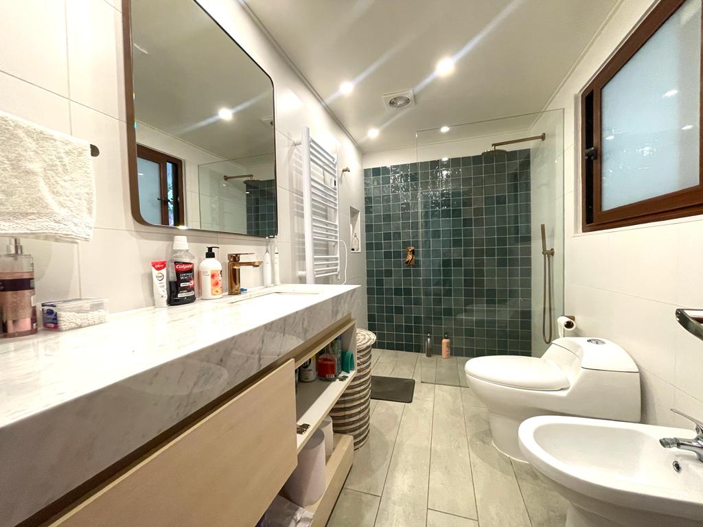 dormitorio principal en suite con salida a la terraza, vestidor, baño remodelado.