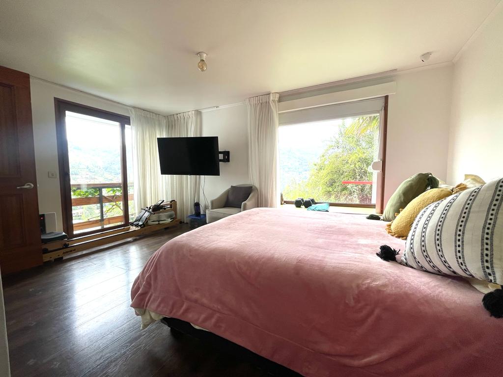 Estupenda y luminosa casa en Condominio/ Acceso a la casa por Ascensor y Escaleras. Maravillosa vista! terreno en terrazas, 2 estacionamientos, piscina, ventanas termopanel, calefacción central, aire acondicionado, zona quincho, terrazas, más una casa de juegos en el árbol.