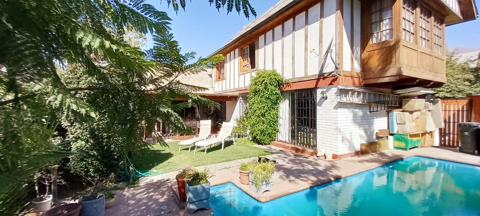 Piscina, con rejas de protección, ampliaciones regularizadas, estacionamiento para tres autos. Cerca Instituto Hebreo, Colegio Dunalastair; U del Desarrollo, Colegio Pedro de Valdivia,