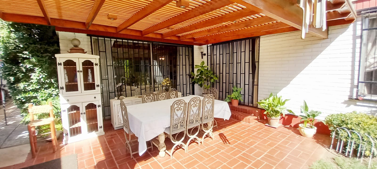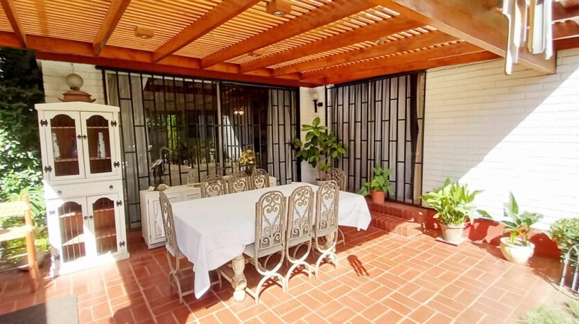 Amplio y como jardín ya consolidado, La casa posee 2 terrazas, una al lado del comedor con espacio para asador y comedor; la otra terraza enfrenta la piscina; ambas están techadas. Bodega.