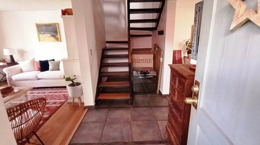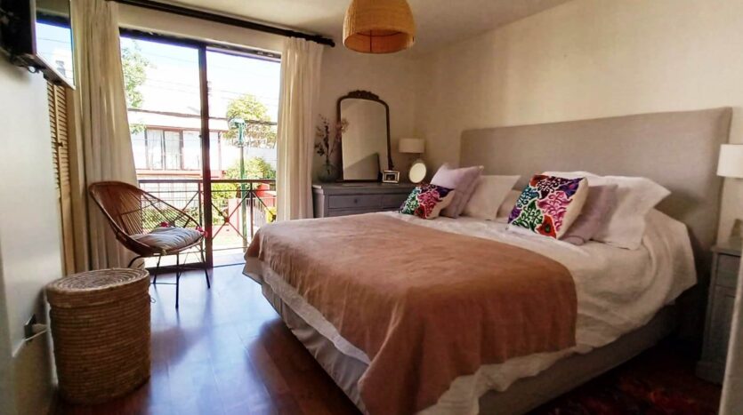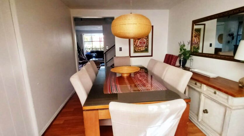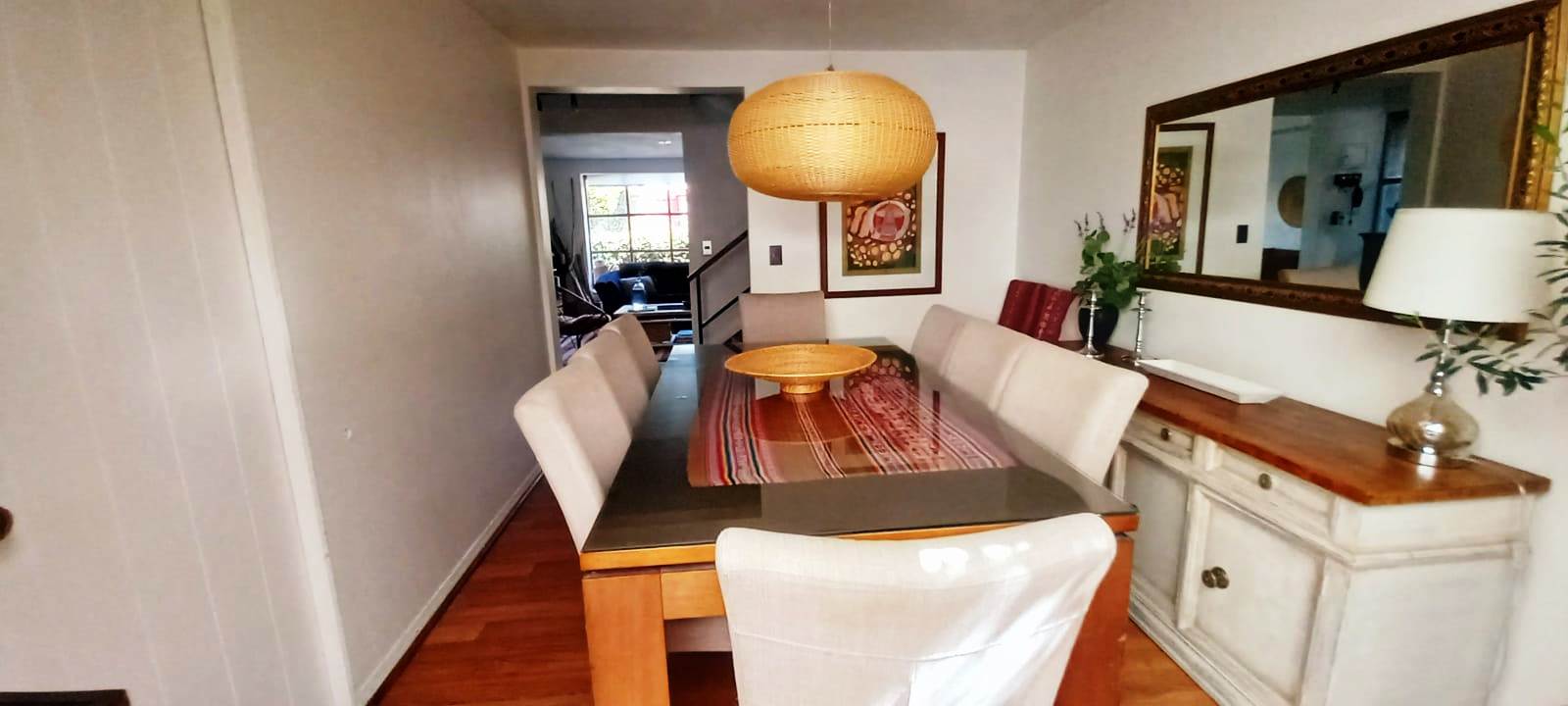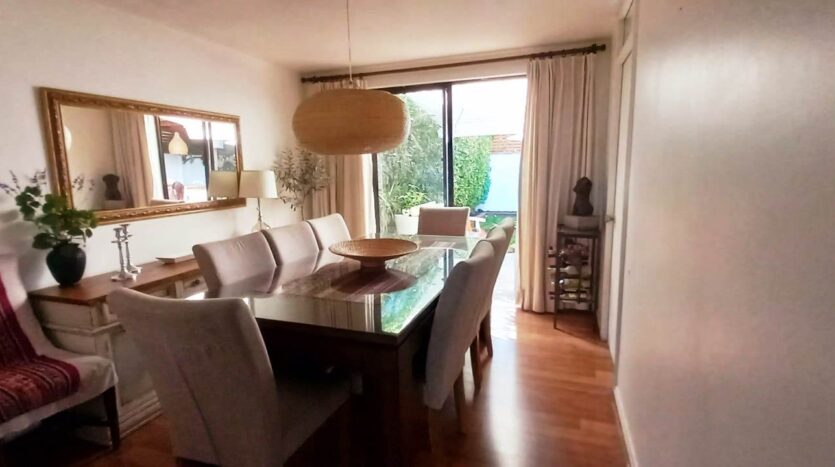 Remodelada, a pasos Av. Las Condes. Casa de 3 pisos, pareada, ubicada en una calle muy tranquuila, con excelente conectividad a Costanera Norte, Av. Las Condes. Muy cercana a colegios Dunalastair, Pedro de Valdivia, etc.. y supermercados, muy buena locomoción. Primer piso, hall de entrada, living comedor separados, comedor con salida a la terraza y quincho techado, cocina para remodelar, pieza y baño de servicio. 2do. piso, 2 dormitorios que comparten un baño el cual ya esta remodelado nás dormitorio principal en suite, con el baño remodelado, walking closet. 3er. piso, amplia sala de estar con gran closet. contribuciones aprox $226.000,- superficies por confirmar. CMM 2001221