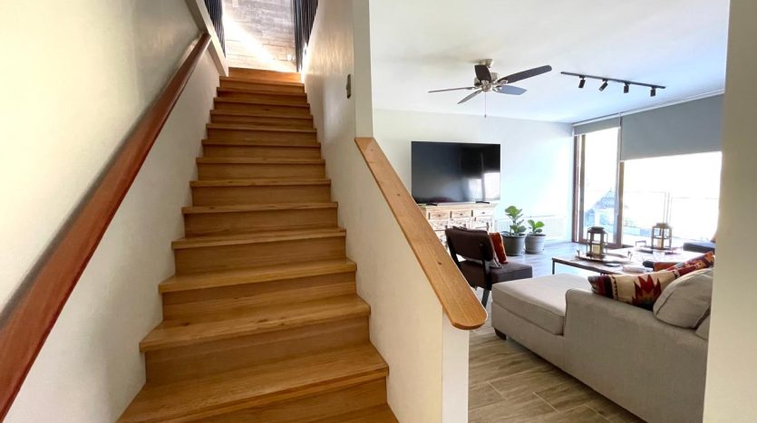 Hall de entrada amplio, baño de visita, cocina americana que se conecta con el comedor y living con salida a grandes terrazas, sala de lavado.