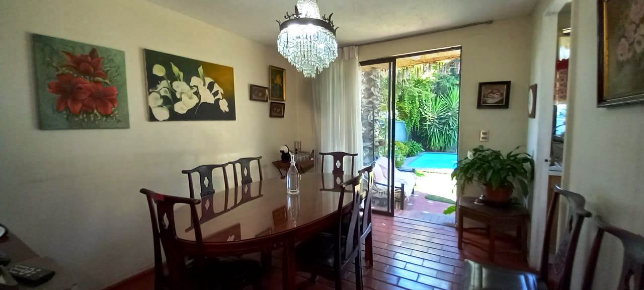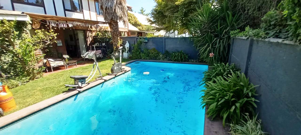 Casa de 3 pisos. Primer piso: Hall de entrada piso batuco, living comedor separado, comedor con salida jardín terraza y gran piscina, cocina amoblada, piso cerámica, loggia, pieza de servicio con baño. Segundo piso: dormitorio principal en suite, 2 dormitorios, 1 baño, dormitorios piso flotante. Tercer piso: dos dormitorios un baño.