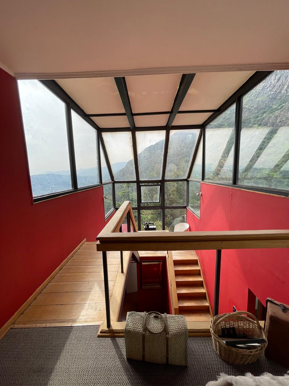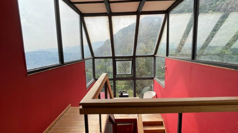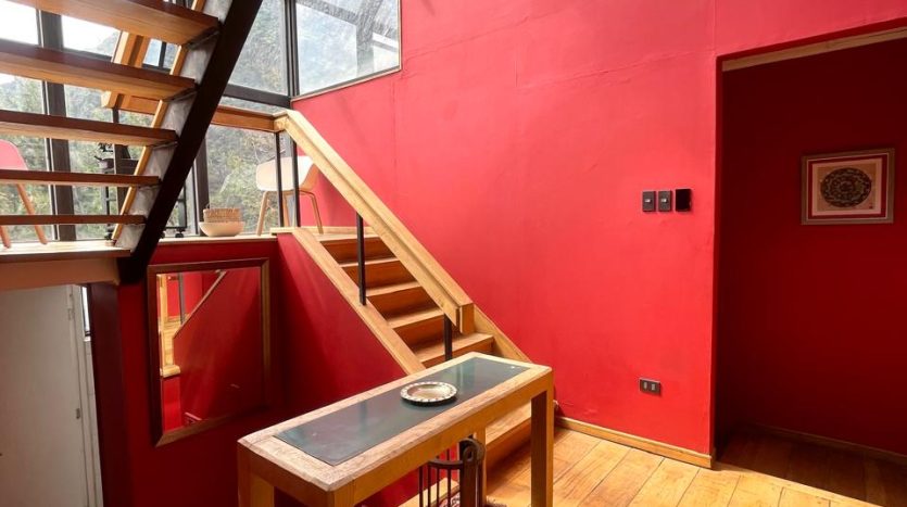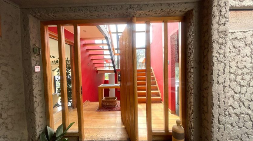 Amplio Hall de acceso con escalera hacia el segundo piso, todo con vidrios con una vista imponente.