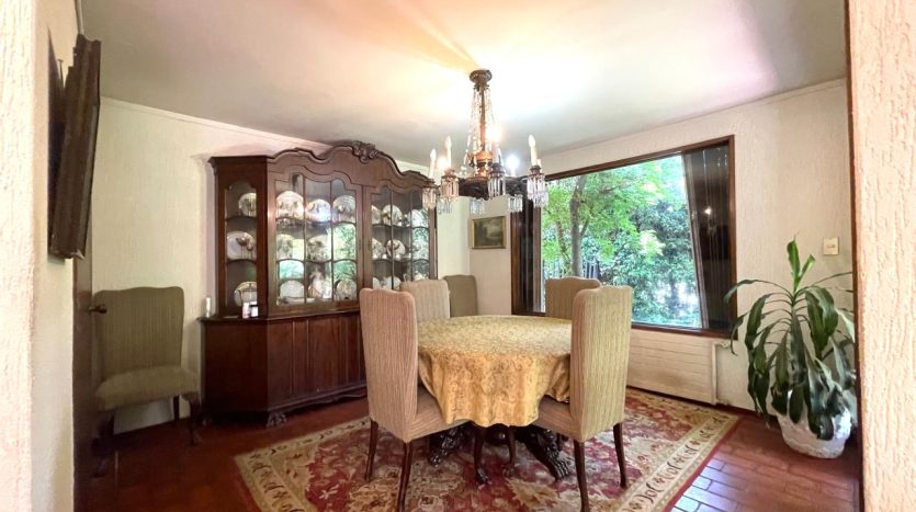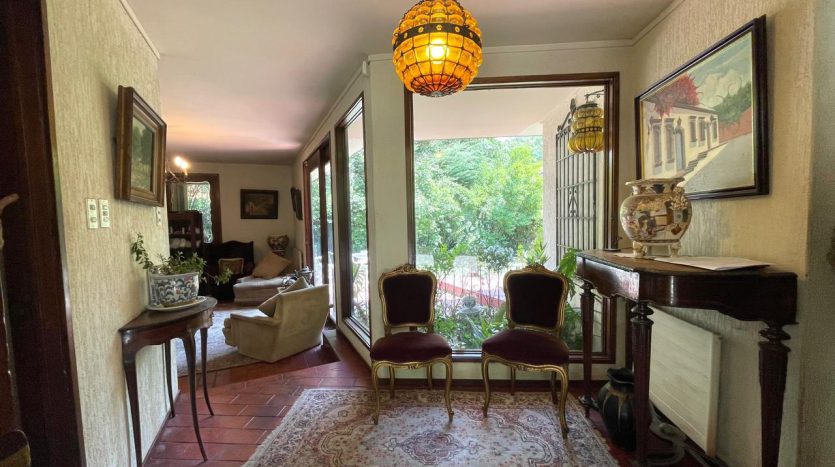 Arrayán ¡! Pasaje tranquilo!! rodeada de una hermosa naturaleza con árboles añosos, linda vista. Gran estacionamiento, 2 techados, calefacción central por radiadores con caldera a gas. Algunos pisos de batuco, toda la casa con persianas de madera. hall de entrada amplio con grandes ventanales con muy linda vista al jardín. A pocos minutos del International Preparatory School y del Maimonides (Jewish Education for New Generation), y cercana también a colegios (The Southern Cross School; Colegio The Southland School. Colegio Dunalastair Las Condes. Lincoln International Academy. Colegio Pedro de Valdivia, Colegio Dunalastair Las Condes, supermercados, farmacias, muy cerca de la plaza San Enrique.