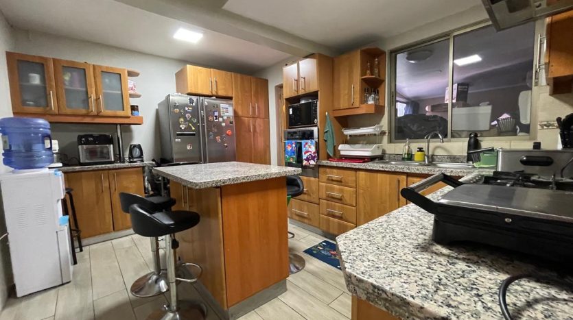 Estupenda casa en dos pisos, excelente ubicación con muy buen antejardín, todas las ventanas termopanel, 4 aires acondicionados, living y comedor, dormitorio principal, dormitorio y respostero. Casita de muñeca en el jardín. Hall de entrada amplio, living comedor junto con salida a la terraza techada, cocina con cubierta de granito, isla, gran repostero( puede ser taller, antes se usaba para fabricar chocolates).